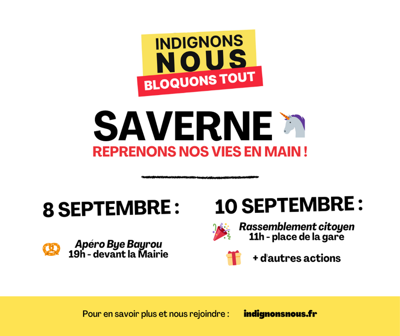 Apéro citoyen Bye Bayrou 08/09 19h Mairie SAVERNE